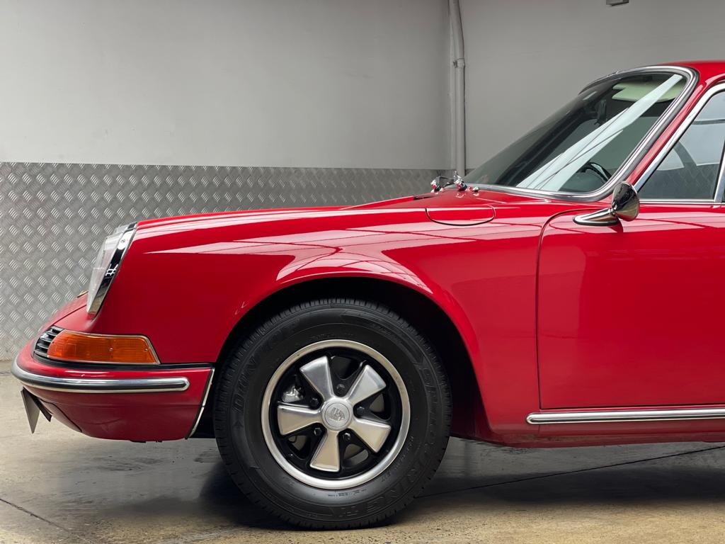 Porche 911 T coupé 2.0 enfriado por aire 6 cilindros (flat six) manual de 5 velocidades, llantas fuchs aro 14, (se fabricaron del 1969 al 1971) con 123 hp, tracción trasera, valor en estados unidos al rededor de 100.000 dólares, restaurado completamente